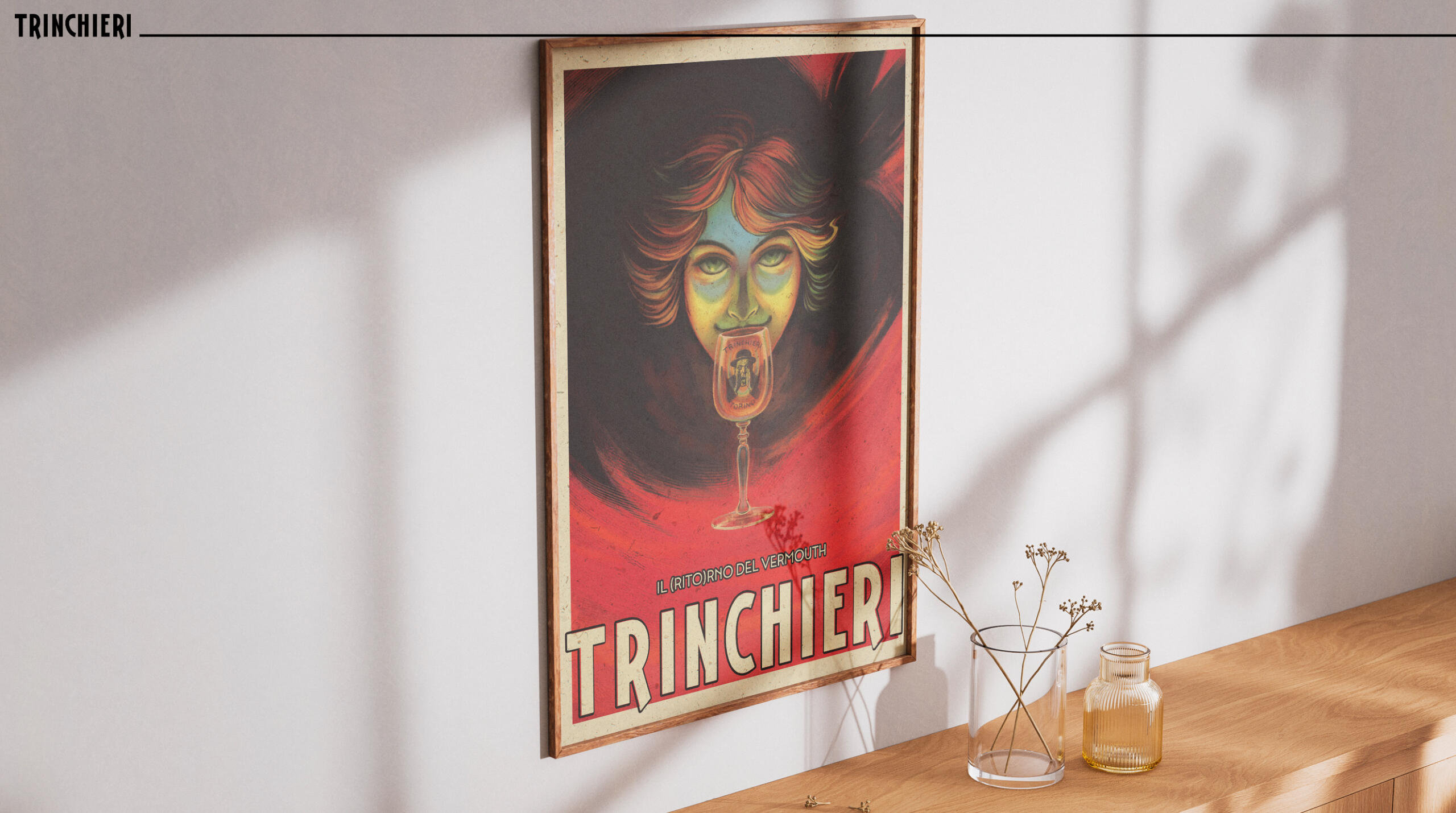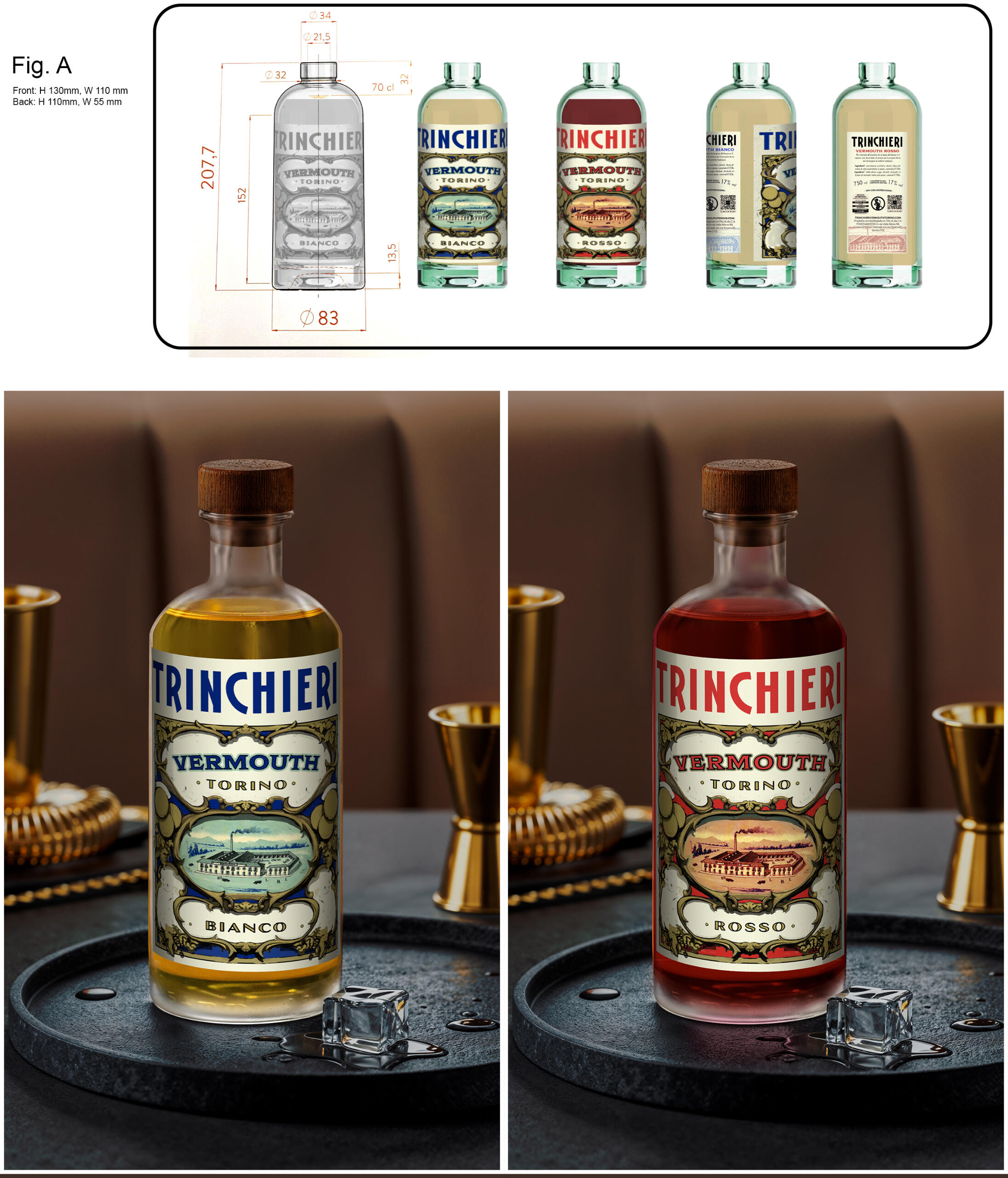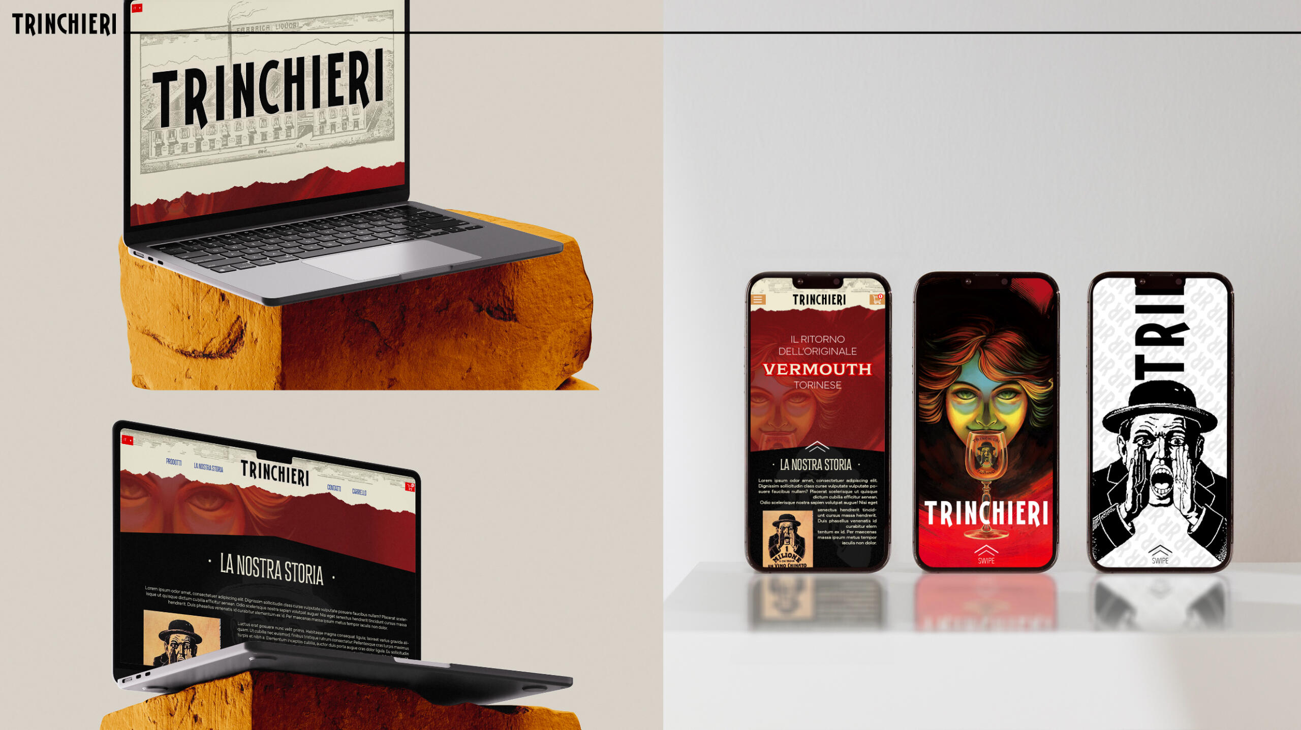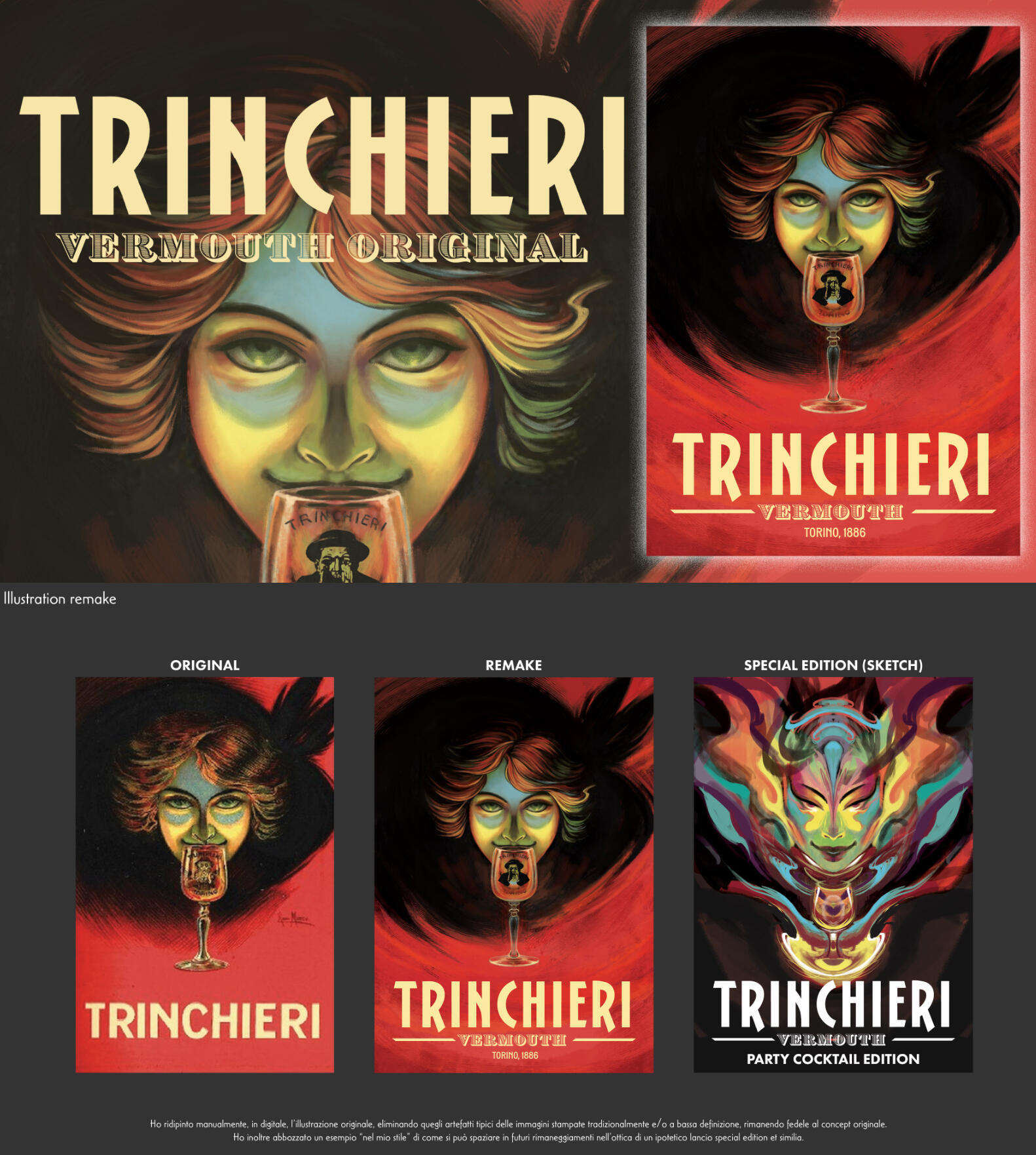 Complete visual rebranding for a historic vermouth label, including logo redesign, packaging, promotional artwork, and web design.