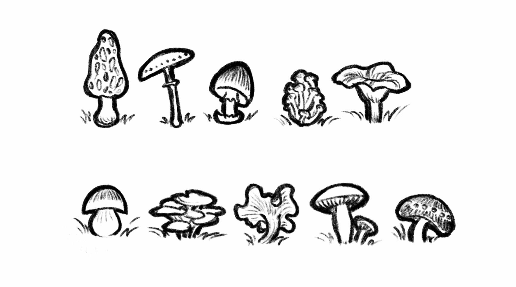 Visual identity and full graphic design for a lighthearted strategy game of mushroom conquest.