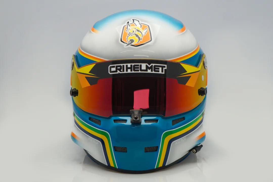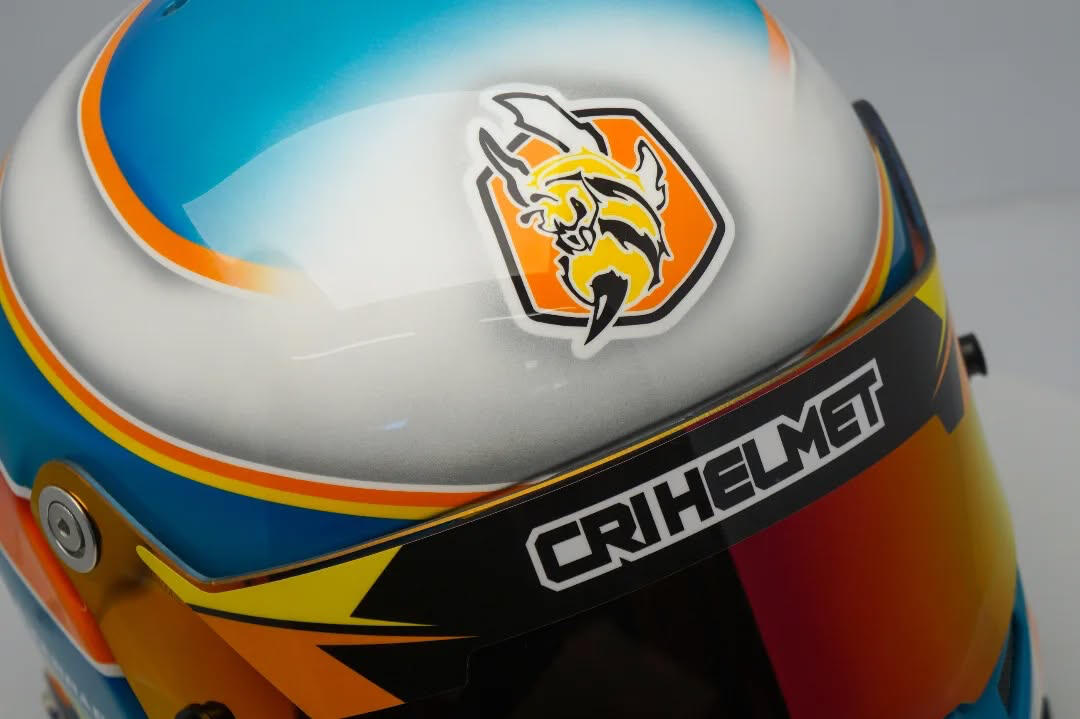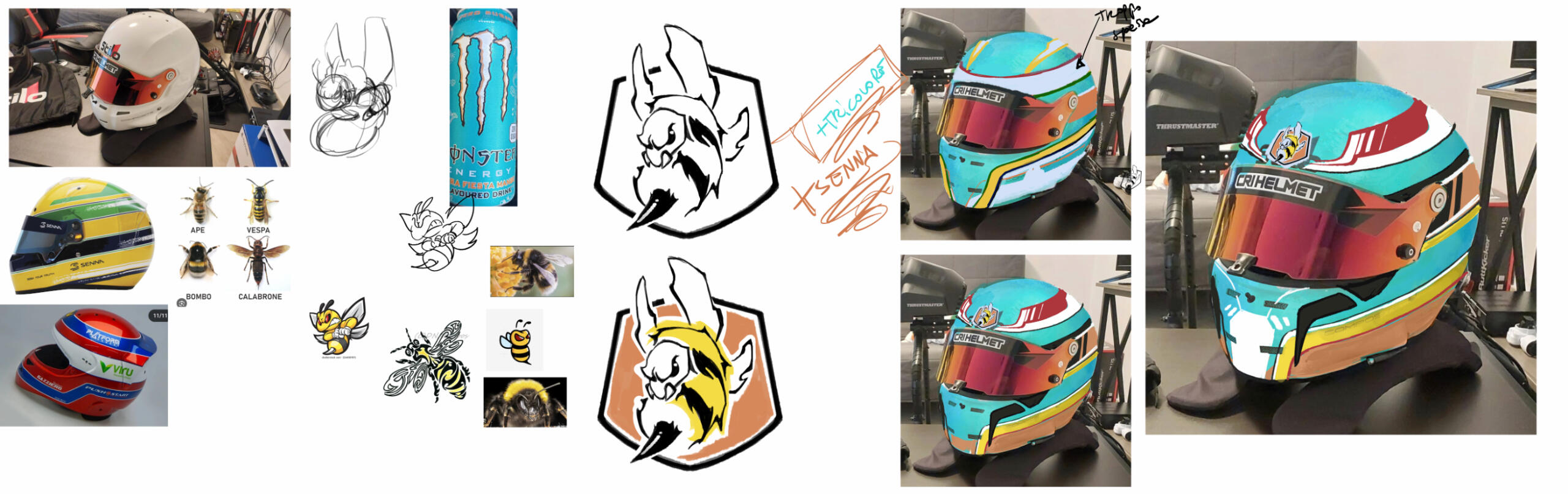 A bold, custom logo and helmet design for a passionate car racer. The bumblebee emblem blends symbolic meaning with a tribal-inspired style — sharp edges and flowing curves — capturing both strength and personality. Finished with his favorite colors and a subtle tribute to Ayrton Senna.